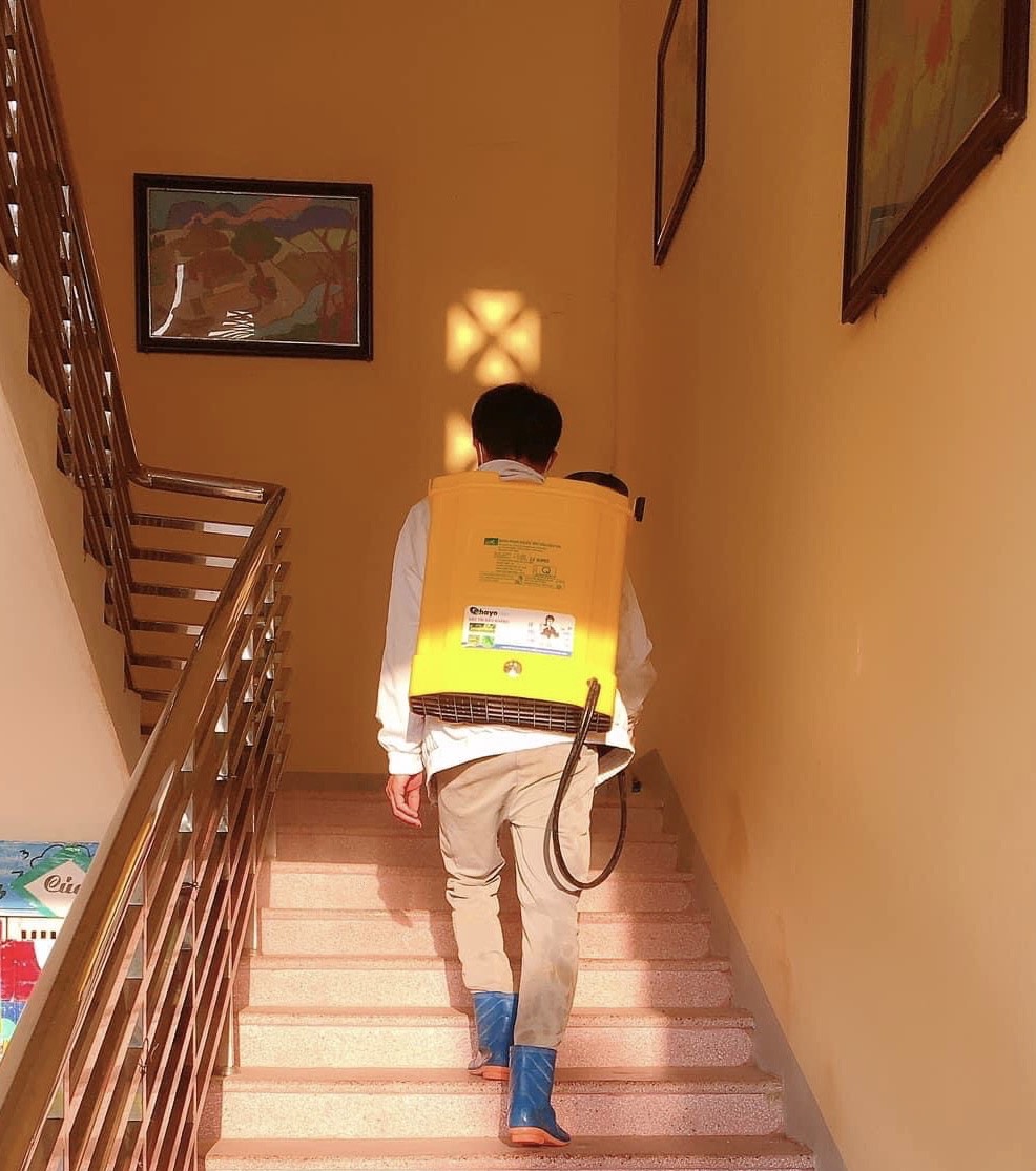 Dưới đây là một số hình ảnh về việc phun thuốc khử khuẩn của nhà trường.